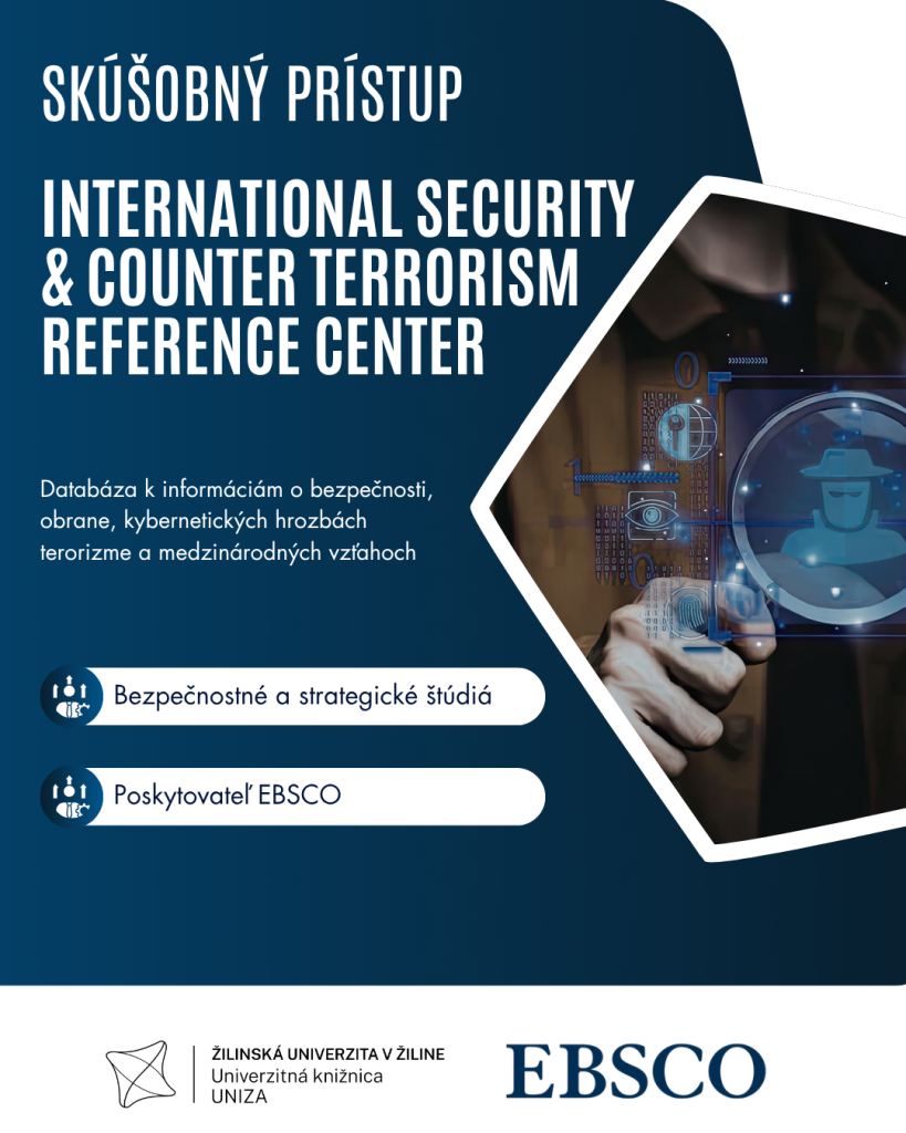 Skúšobný prístup k špecializovanej databáze EBSCO, zameranú na bezpečnostné a strategické štúdiá, ktorá ponúka rozsiahly zdroj odborných informácií z viacerých prepojených oblastí.