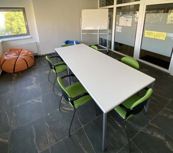 Vo vonkajších priestoroch je prístup k voľnočasovej literatúre v Knižnej búdke a využitie funkcionalít inteligentnej lavičky, či posedenie v Čitárni pod stromom (funguje v obmedzenom období).